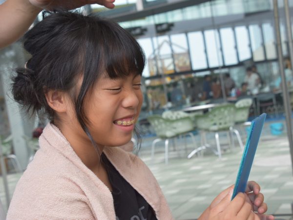 イベントの思い出として、お子さま達のより一層の笑顔を引き立てるために、出発前のヘアアレンジサービスをさせていただきました。