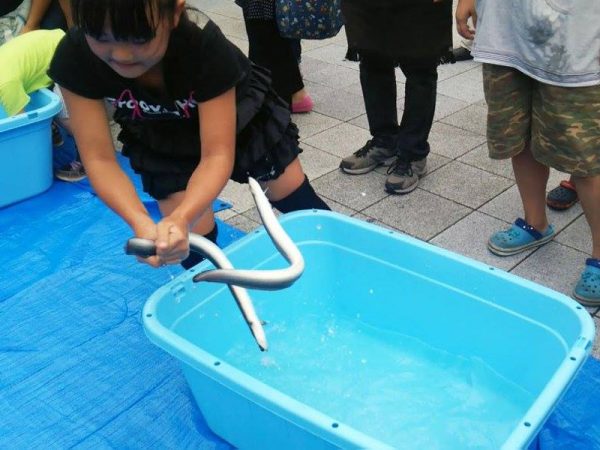 ちょっと寄り道して広場内のイベントに参加していたお子さんもいらしていたみたいですね。うなぎのつかみ取り、お見事!