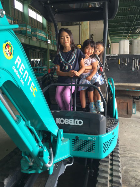 レンテック大敬では、重機に乗って写真を撮ったり、高所作業車に乗って高いところからの眺めを見たりしてもらいます。