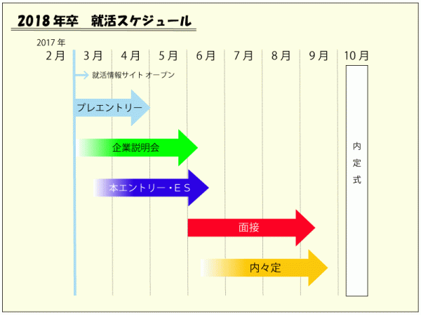 2018年卒の学生の就活スケジュールは、昨年と同じです。