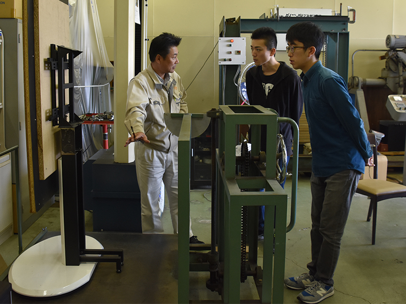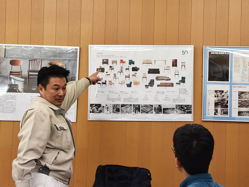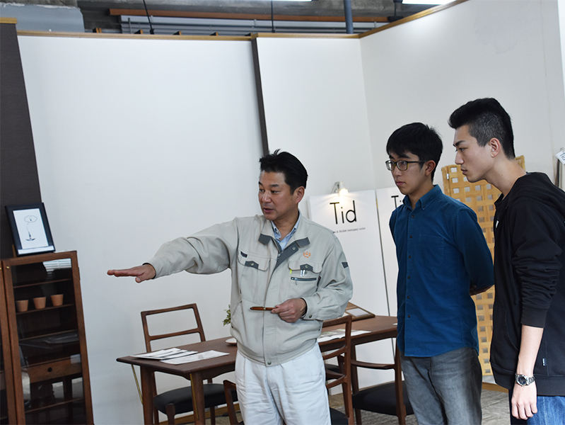 様々な品質検査の装置を見せて頂いたあと、実際に作られる家具を見せて頂きながら、海外展開と商品についてのお話しを伺いました。