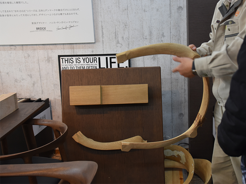 こちらはBRIDGEシリーズのイスに使われている背もたれから手すりにかけての部分です。