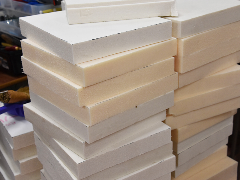 ゆくゆくは戦車のボディとなる発泡スチロールが積まれている