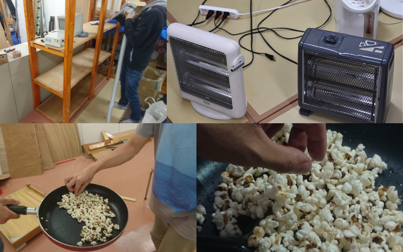 (右上)軽音部から壊れたストーブを貰い、修理して使用中