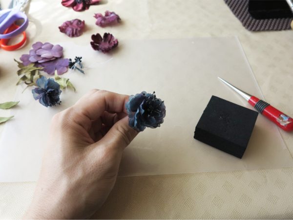 綾野さんの説明どおりと言っても、コテを当てる強さや角度、動かす速度によって花びらの表情は大きく変わる。試行錯誤しながら、本物の花に近い動きが出せた(と自分で満足する)時には一気に布花の魅力に引き込まれる。