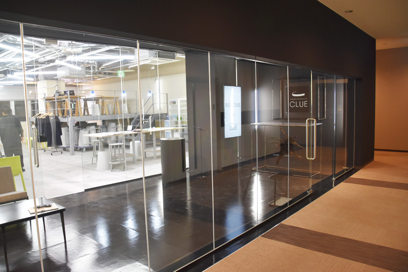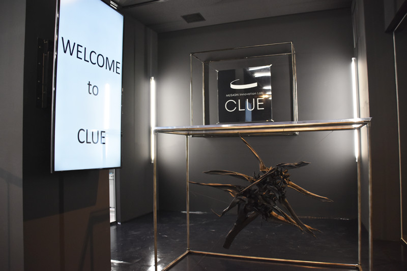 黒を基調としたかっこいいエントランスに「CLUE」の文字。ここが噂の、MUSASHi Innovation Lab CLUEだ。