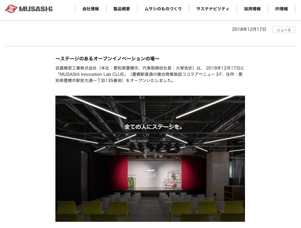 それは、豊橋駅直通の複合商業施設ココラアベニュー3階に、「MUSASHi Innovation Lab CLUE」をオープンしたというもの。