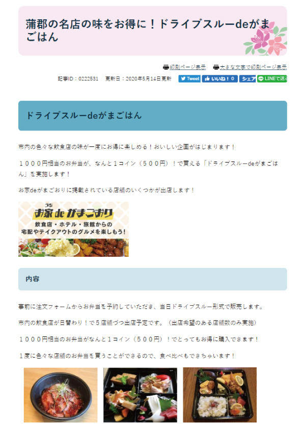 | 詳細 | ドライブスルーdeがまごはんHP |
