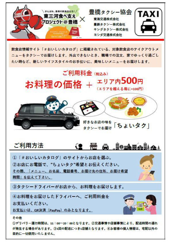 東三河食べ支えプロジェクト@豊橋「#おいしいカタログ」が豊橋タクシー協会と連携し新サービス【ちょいタク】をスタート!
