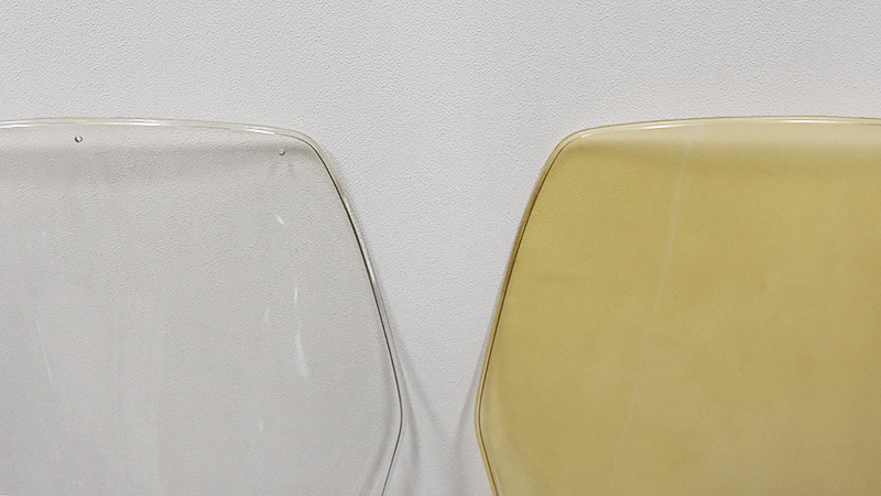 頑丈なポリカーボネートにも、布でこすると擦り傷が付きやすかったり、太陽にあたると黄色くなってしまったりするという弱点がある。