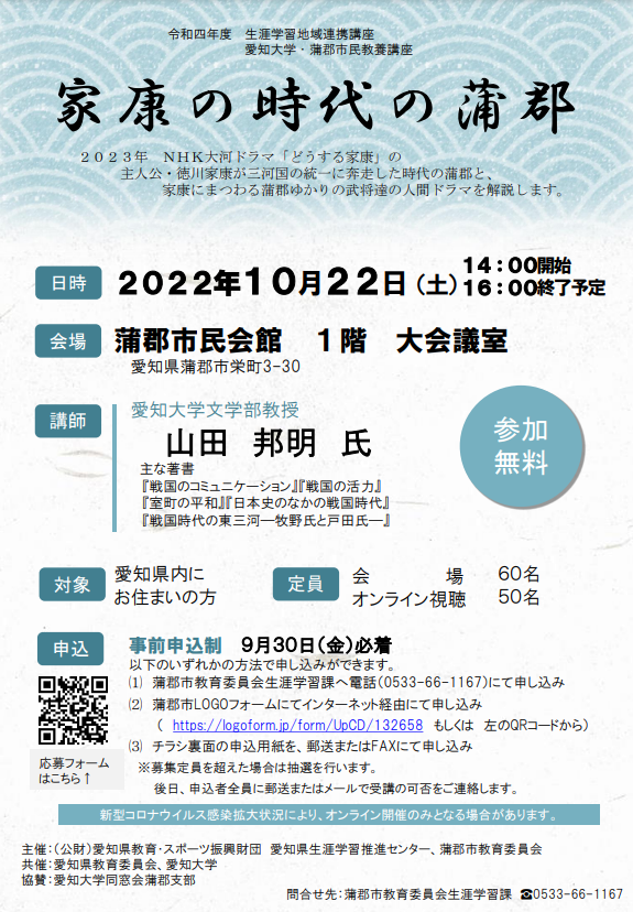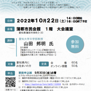 生涯学習地域連携講座 兼 愛知大学・蒲郡市民教養講座「家康の時代の蒲郡」