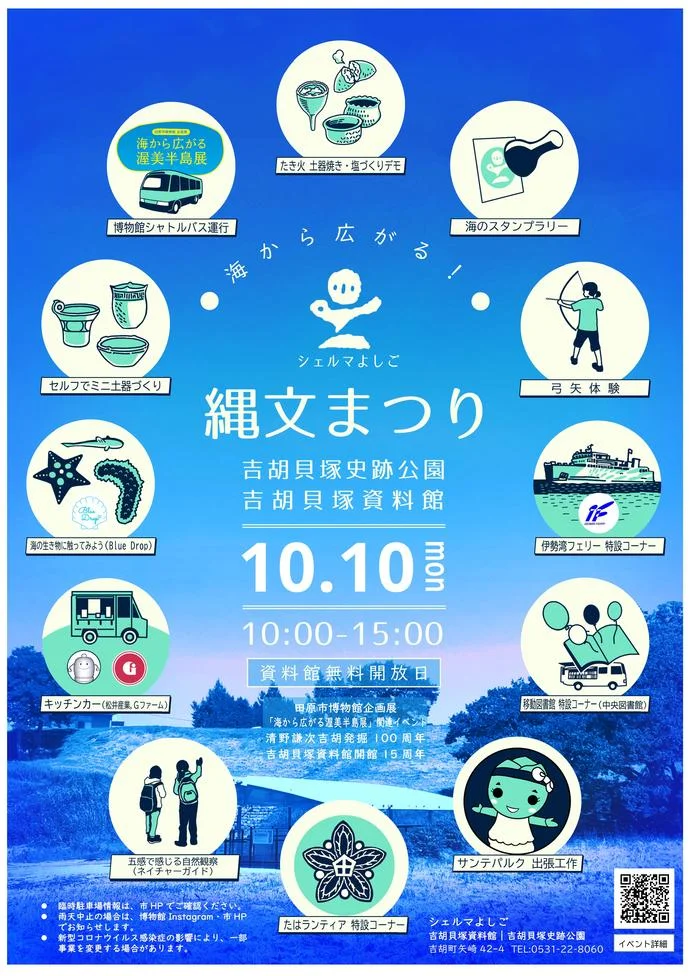 年に一度の人気イベント。今年は田原市博物館企画展「海から広がる渥美半島展」(10/8(土)〜)に合わせて10月に開催されます。縄文体験や自然観察、キッチンカー出店など楽しいイベントがたくさん!