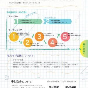 新しくできる施設でどのようなことができるかを検討する上で、実際に使用していく市民の皆さんの意見が重要です。ワークショップに参加して「こんな機能があるといい」「こんなふうに使いたい」など、思いを伝えてみませんか?