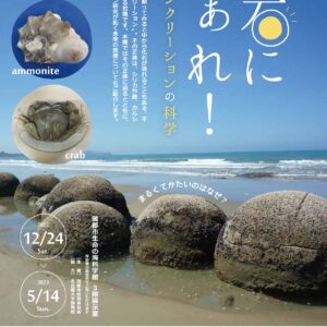 本展では、最新の研究成果をもとに球状コンクリーションの正体に迫るとともに、球状コンクリーション研究が拓く未来の技術や、地球外で発見された!?宇宙の球状コンクリーションについてもご紹介します。