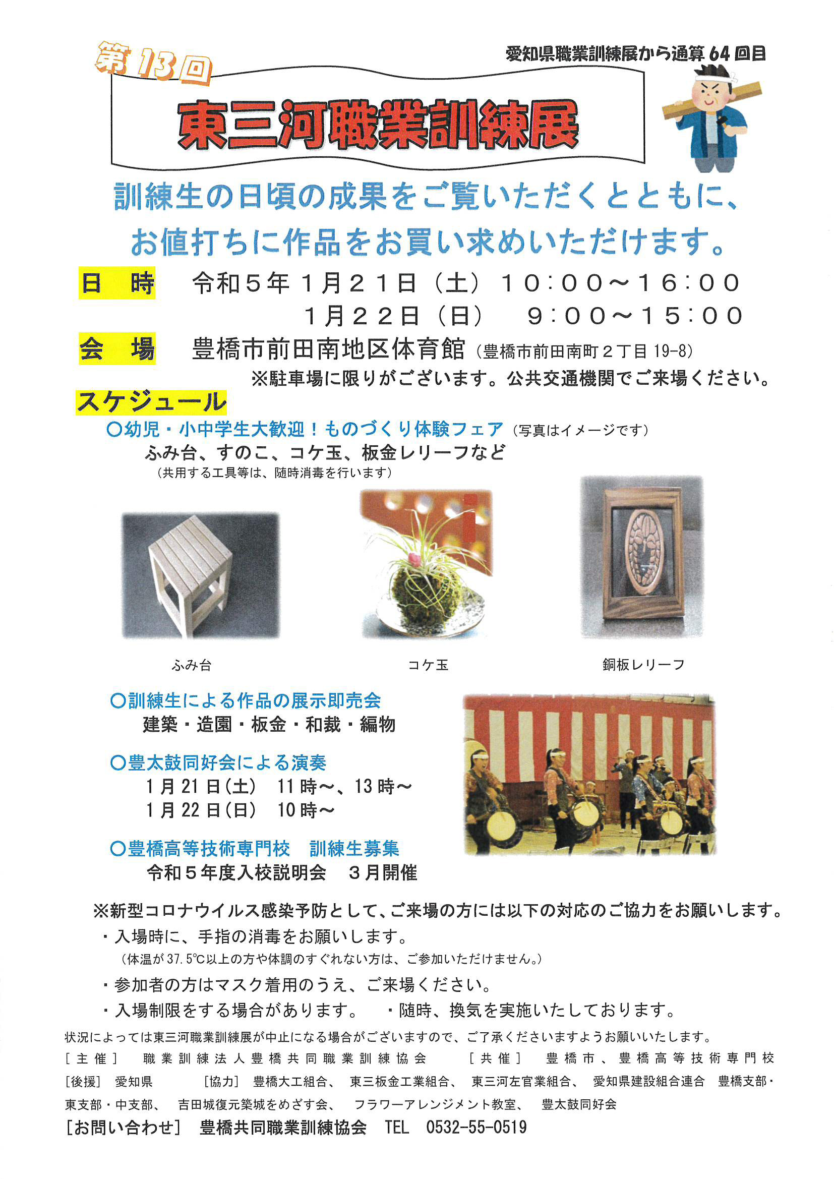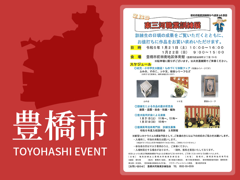 状況によっては東三河職業訓練展が中止になる場合がございますので、ご了承くださいますようお願いいたします。
