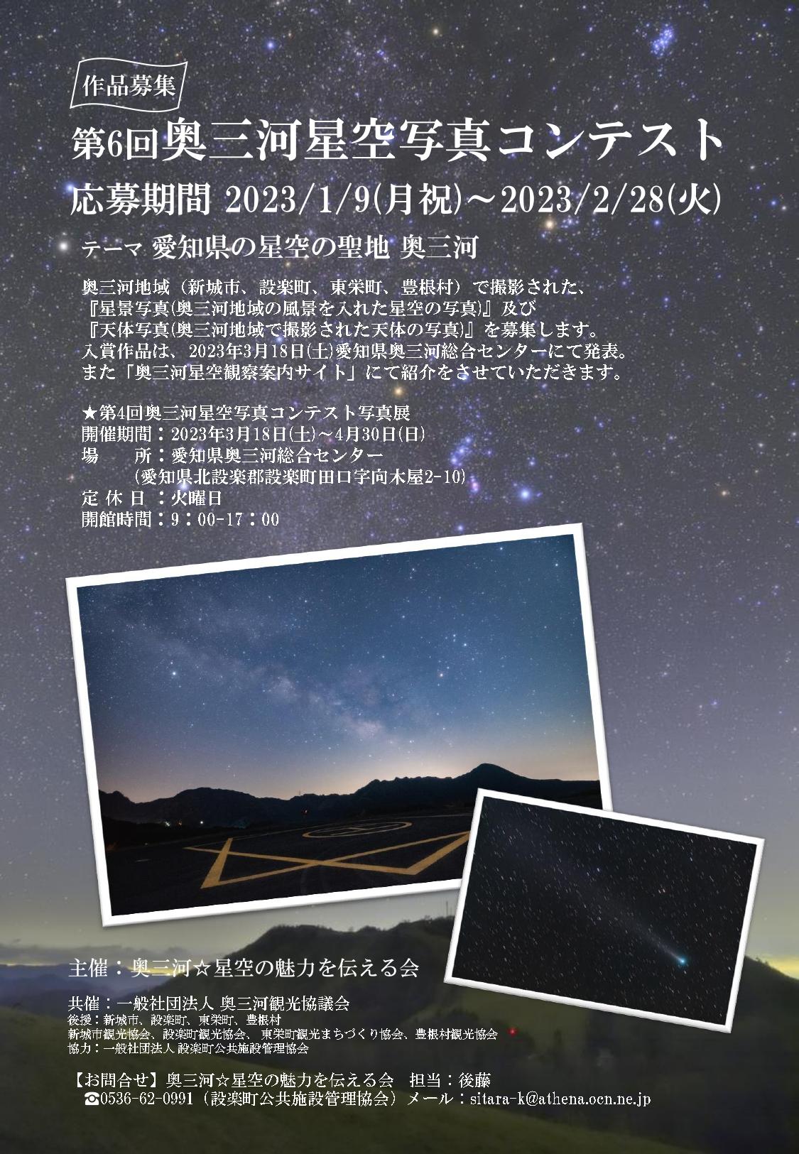 『星景写真(奥三河地域の風景を入れた星空の写真)』及び『天体写真(奥三河地域で撮影された天体の写真)』