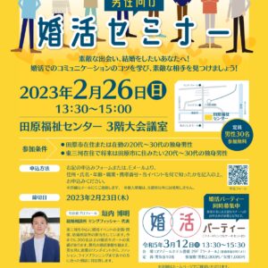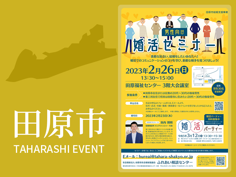 田原市在住または在勤の20代~30代の独身男性または東三河在住で将来は田原市に住みたい20代~30代の独身男性