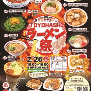 寒空の中、東三河のラーメン&グルメを一同に楽しめるまちなかマルシェを開催します。