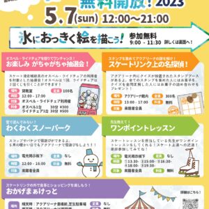 | 日時 | 2023年5月7日(日) ■氷におっきく絵を描こう!9:00~11:30 ■春のスケート無料開放!2023 12:00~21:00 |