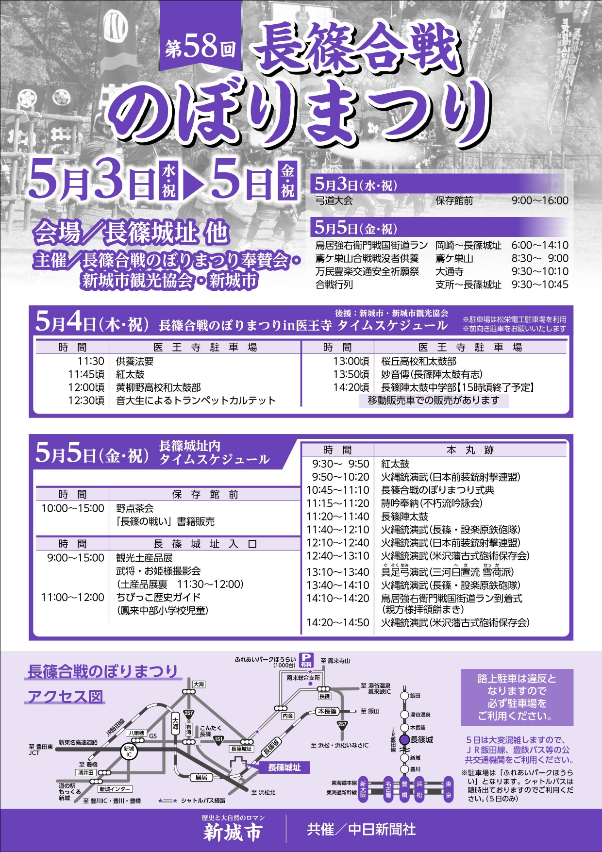 | 主催 | 長篠合戦のぼりまつり奉賛会・新城市観光協会・新城市 |