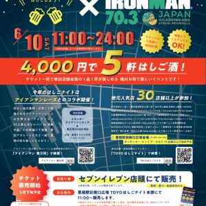アイアンマン70.3東三河 in 渥美半島の大会当日、アワードパーティーの一環としてTOYOはしごナイトが開催されます!