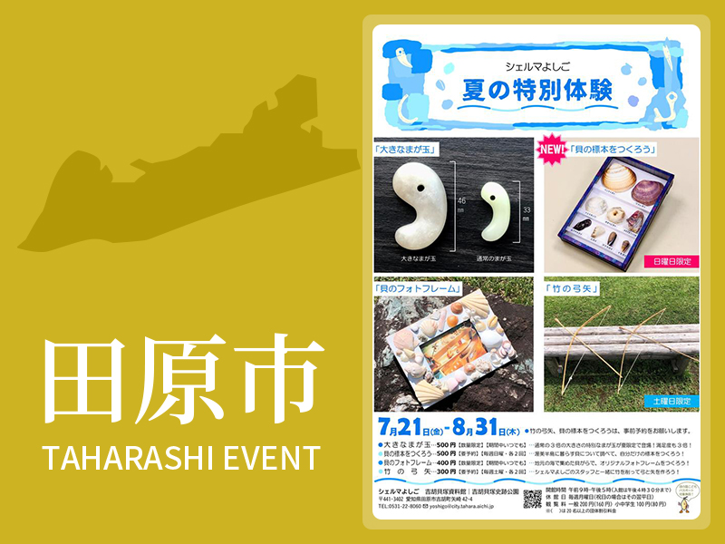 吉胡貝塚資料館(シェルマよしご)では、7月21日より夏の特別体験を開催します。