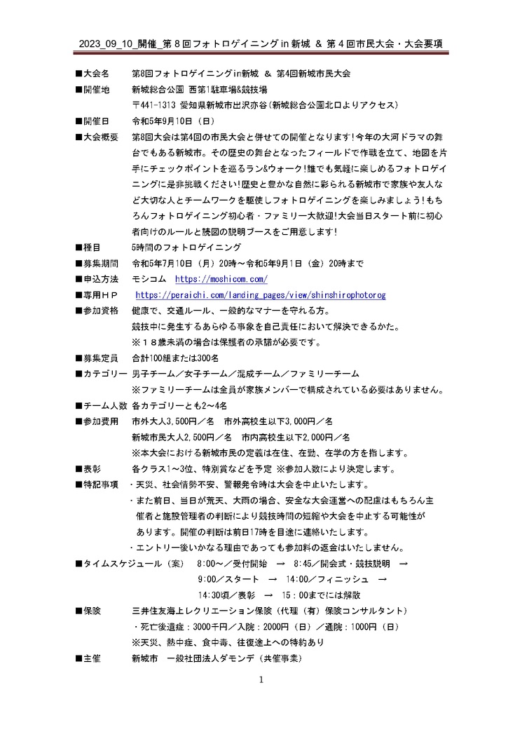 挑戦・体験・発見フォトロゲイニングin新城~第4回市民大会~