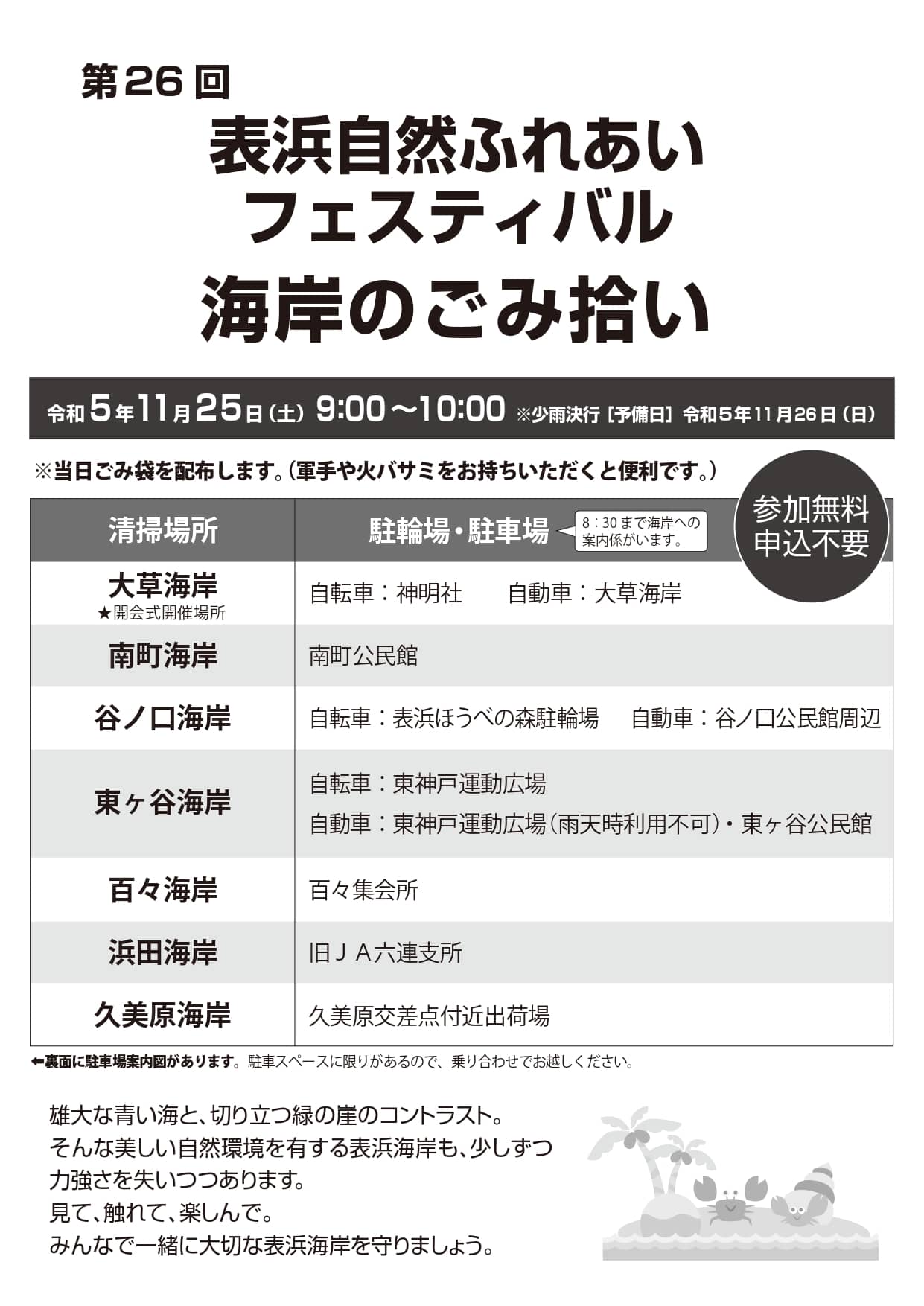 | 場所 | 大草・南町・谷ノ口・東ヶ谷・百々・浜田・久美原の各海岸 |