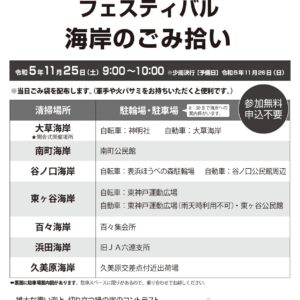 見て、触れて、楽しんで。みんなで一緒に大切な表浜海岸を守りましょう! 各海岸で海岸のごみ拾いを行います。