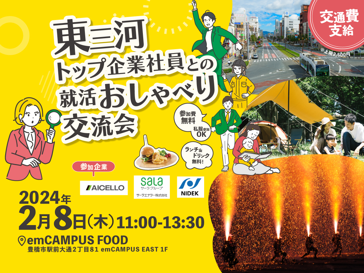 東三河エリアに本社をおく大手企業社員と話せる就活交流会を開催します。