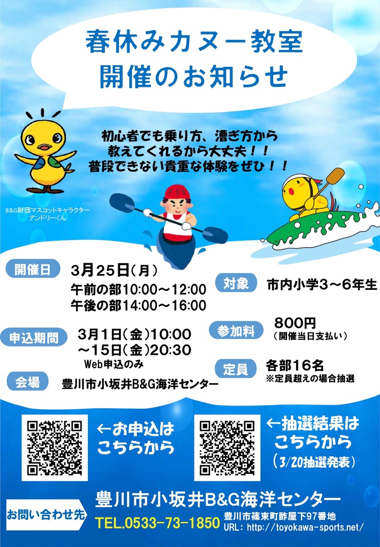 春休み、カヌーに乗ろう!@小坂井B&G海洋センター