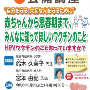第2弾 『「赤ちゃんから思春期まで、みんなに知ってほしいワクチンのこと」~HPVワクチンのこと、知っていますか?~』