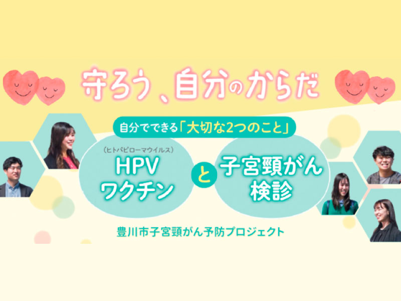 豊川市では、ワクチン接種率と検診受診率の向上を目指し、保健センターが中心となり、教育委員会と連携しながら豊川市医師会協力のもと、「豊川市子宮頸がん予防プロジェクト」を立ち上げ、子宮頸がんの予防に取り組んでいます。
