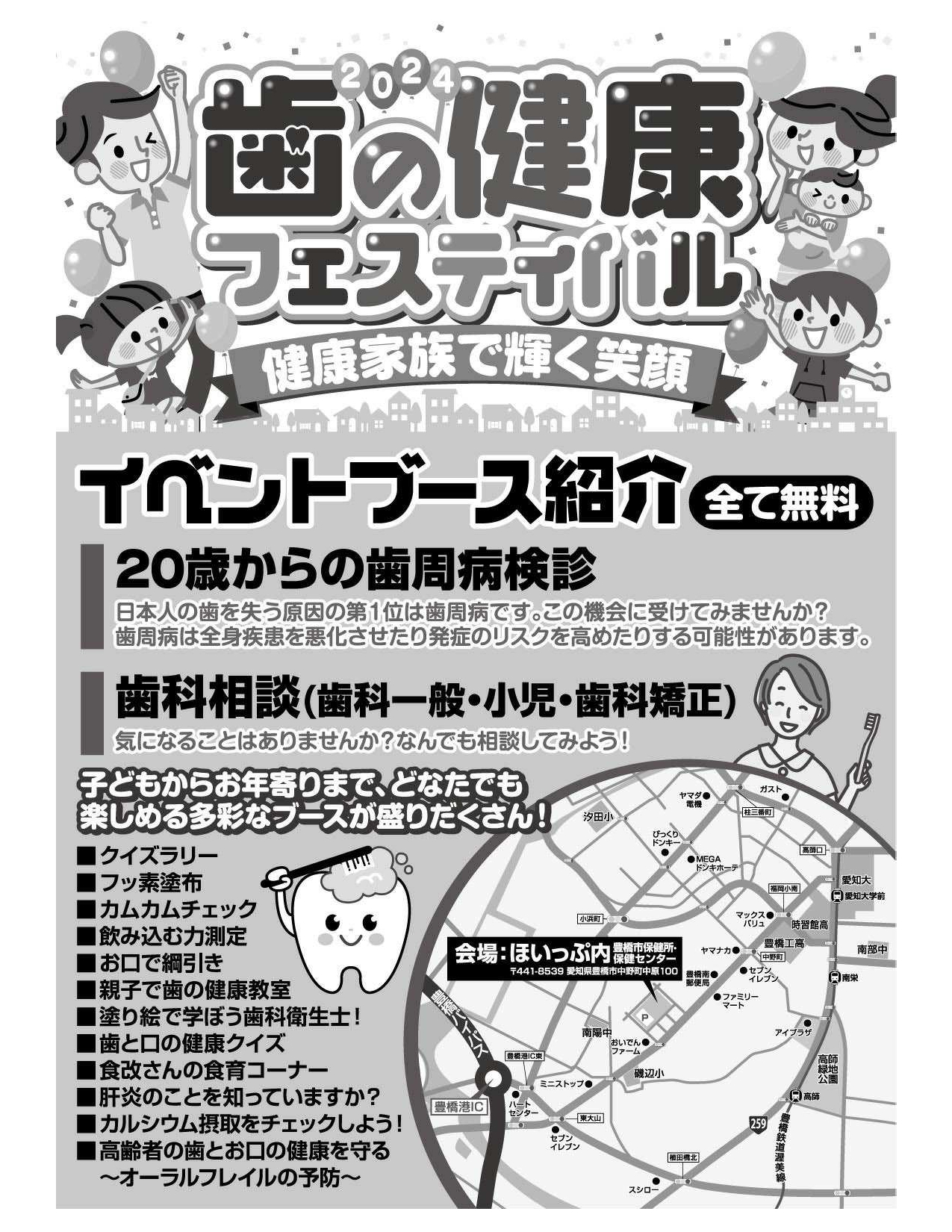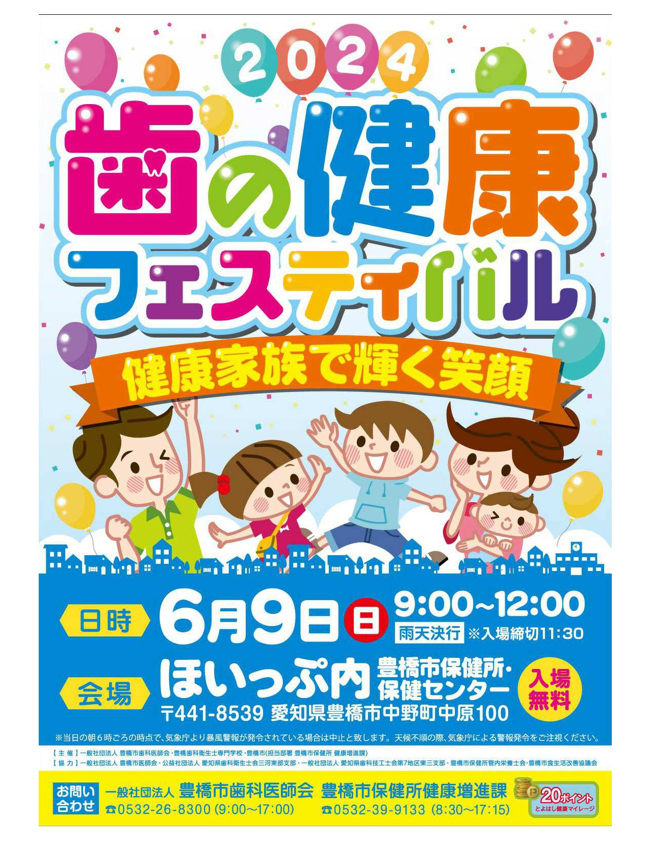 豊橋市では、歯と口の健康週間(6月4日~10日)に合わせ、豊橋市歯科医師会等と共に「歯の健康フェスティバル 2024」を開催します。