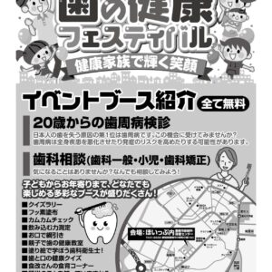 今年は「フッ素塗布」や「歯周病検診」など、人気のブースが復活します。その他にも各団体が趣向を凝らしたブースをご用意し、皆さまをお待ちしています。