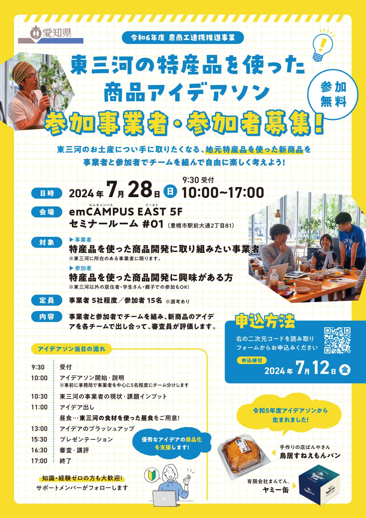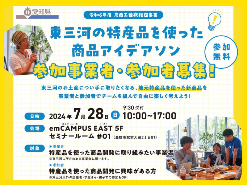 東三河お土産につい手に取りたくなる、地元特産品を使った新商品を事業者と参加者でチームを組んで自由に楽しく考えよう!