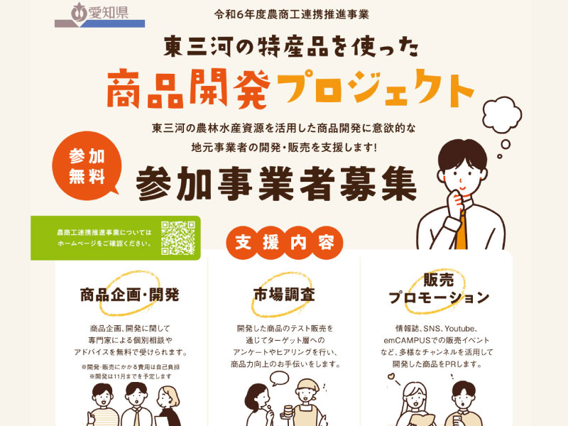 東三河の農林水産資源を活用した商品開発に意欲的な地元事業者の開発・販売を支援します!