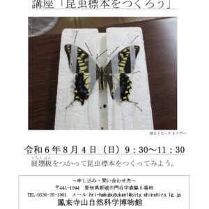 夏の特別展連動企画 講座「昆虫標本をつくろう」@鳳来寺山自然科学博物館