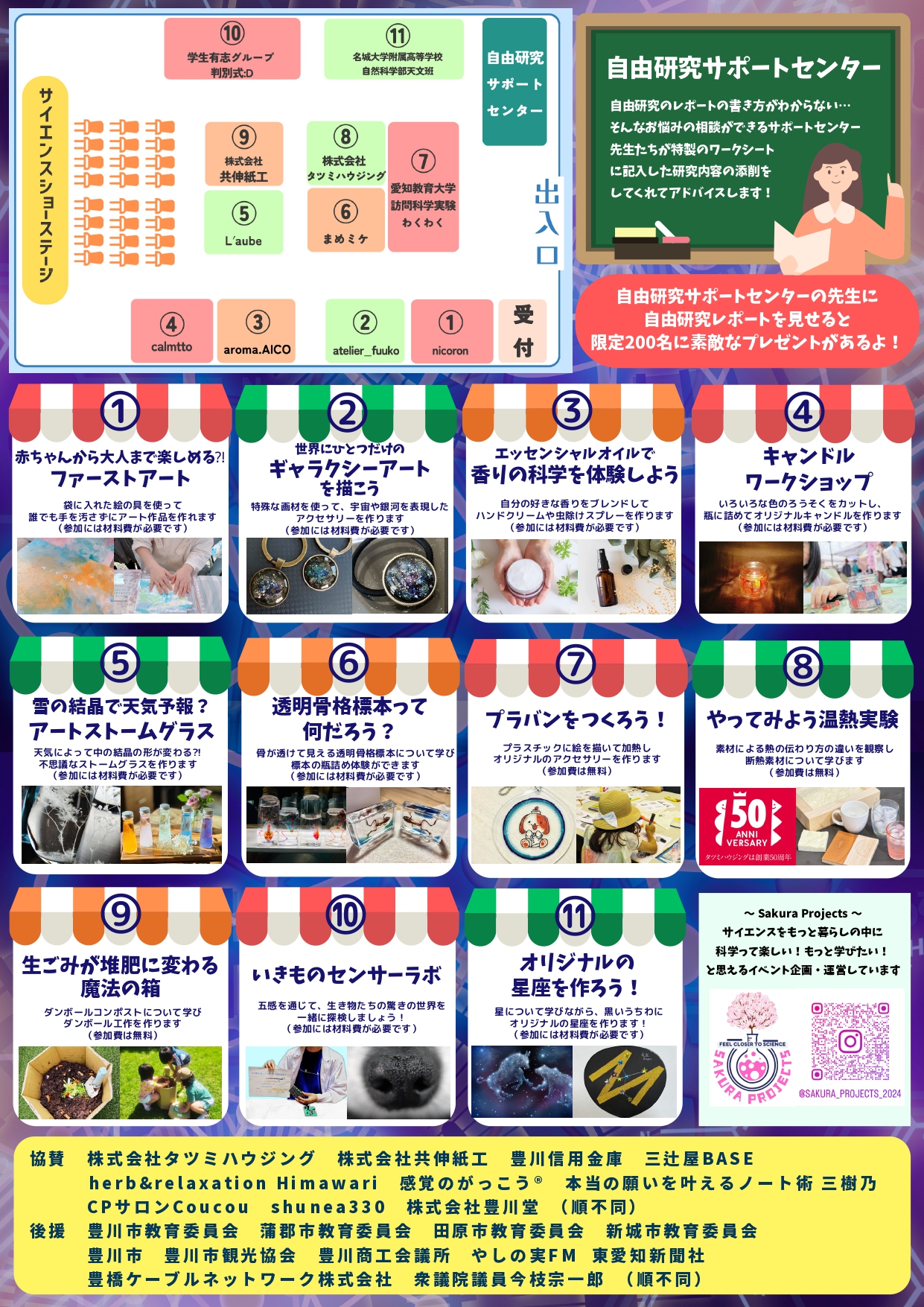 楽しく学べるサイエンスショーや作って楽しく学べるワークショップ、自由研究の内容の添削などをしてくれる自由研究サポートセンターなどが集まる科学イベント!