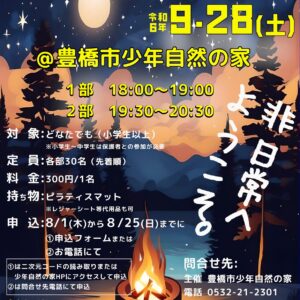 | 問合せ | 少年自然の家 TEL:0532-21-2301 |