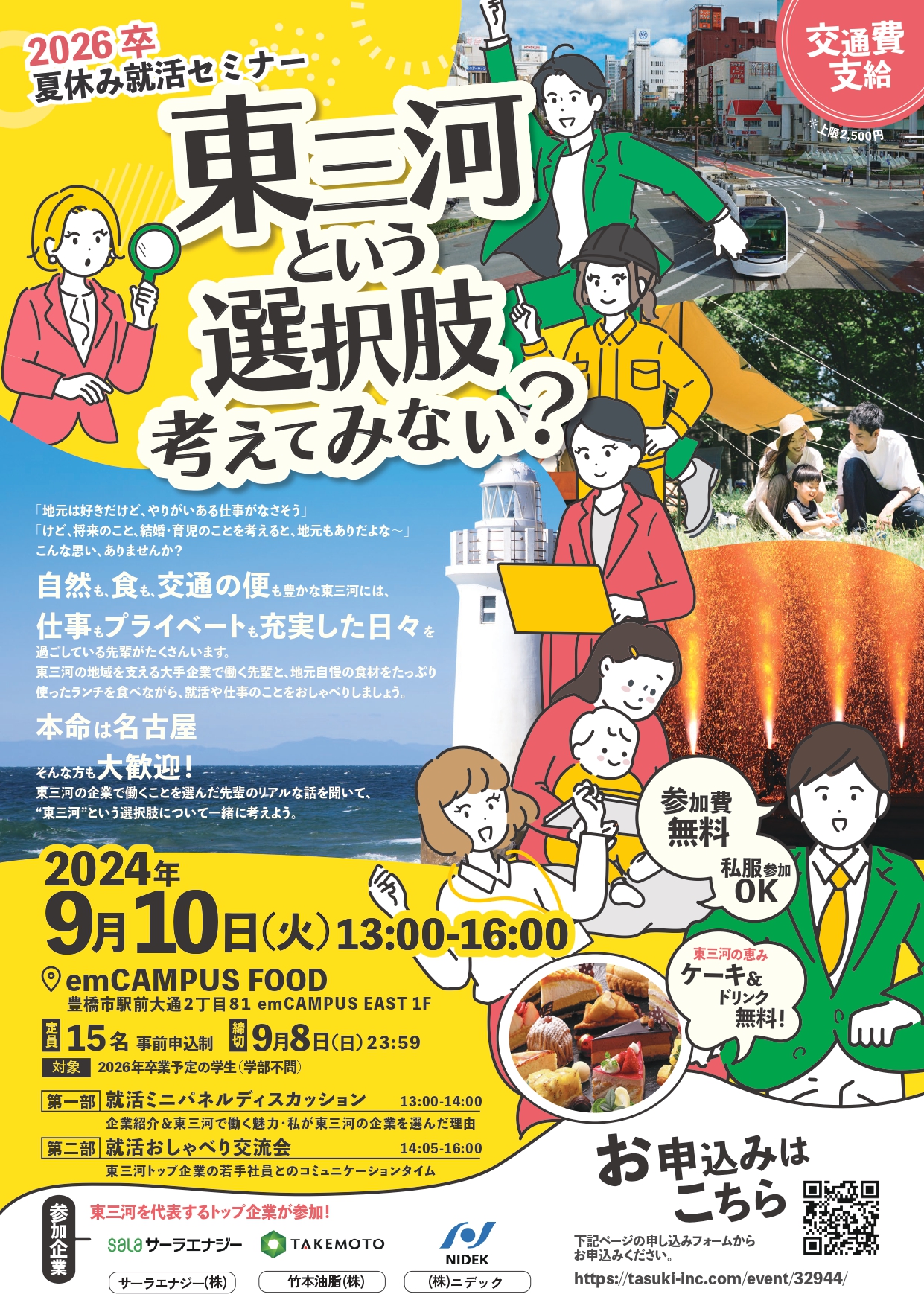 東三河エリア外からの参加も応援したいため、1人上限2,500円で実費分の交通費を支給します。(東三河エリアからの参加学生も支給対象です)