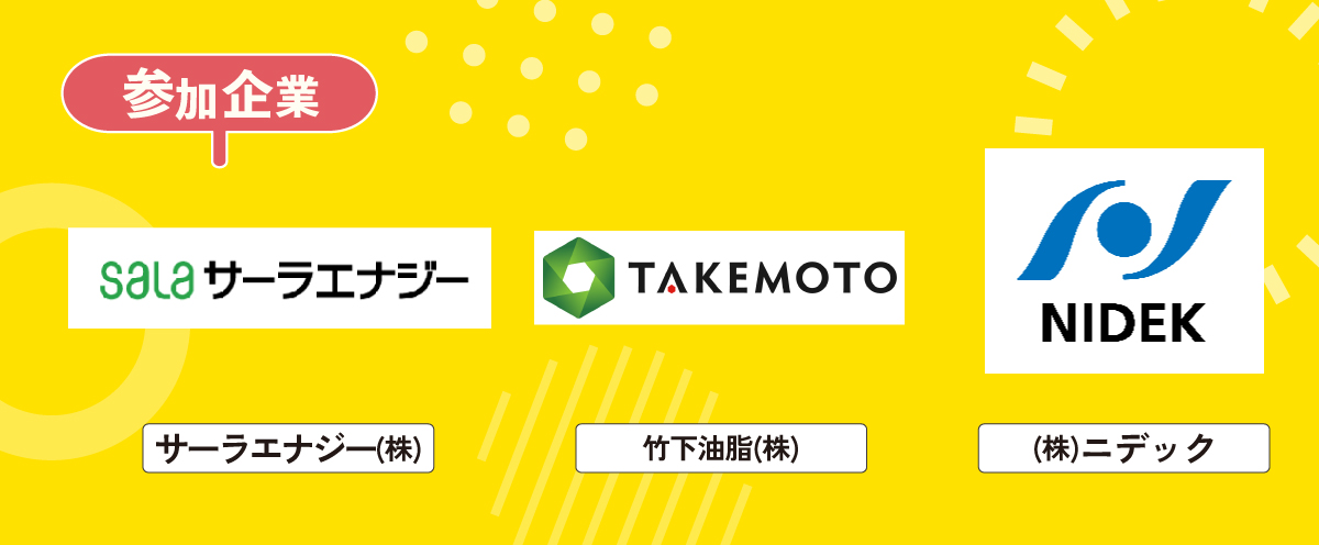 参加企業:サーラエナジー株式会社、竹本油脂株式会社、株式会社ニデック