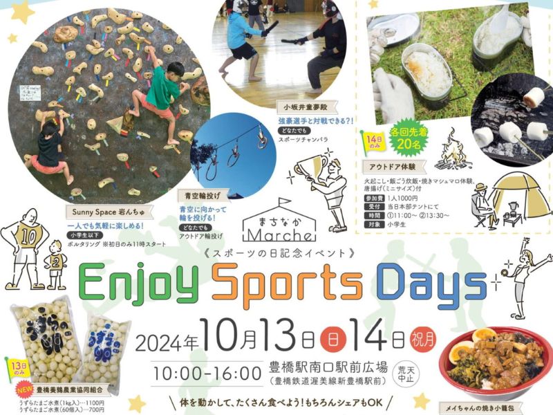 まちなかマルシェ Enjoy Sports Days: 2024年10月13(日)・14日(祝・月) 10:00~16:00 とよはしスポーツフェス2024: |