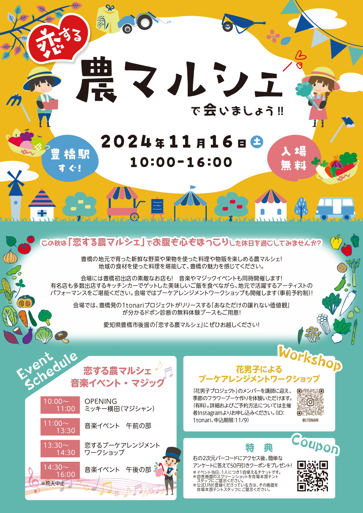 野菜に、音楽に、食べ物に、花に!豊橋に恋する素敵な休日を豊橋駅南口駅前広場で味わえる『恋する農マルシェ』を開催します♪