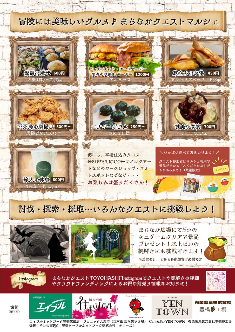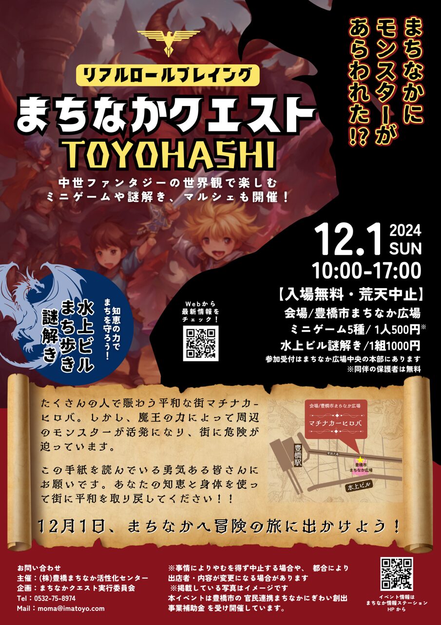 | 詳細 | まちなかクエスト豊橋HP ※本ページは2024.11.11時点の情報になります。 |
