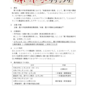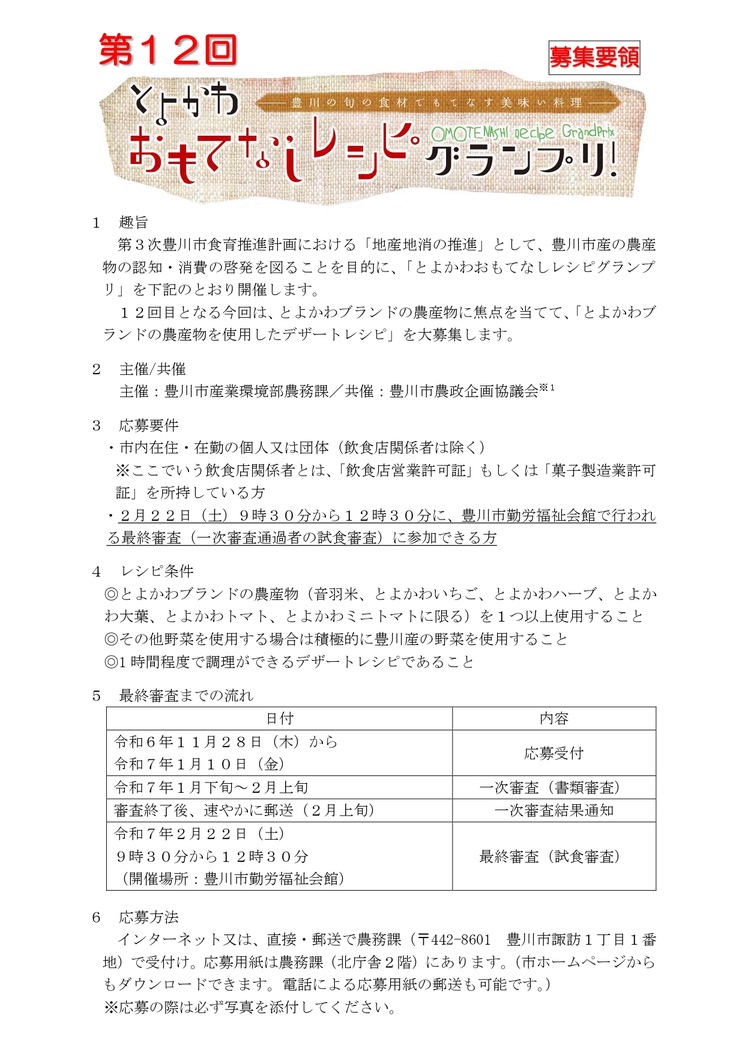 12回目となる今回も、とよかわブランドの農産物に焦点を当て、「とよかわブランドの農産物を使ったデザートレシピ」を大募集します。