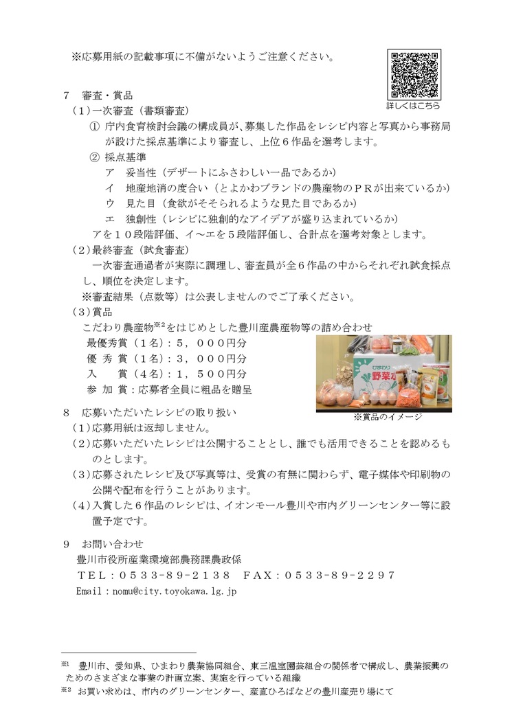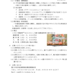 入賞されたレシピは市ホームページに掲載するとともに、イオンモール豊川や市内グリーンセンター等に設置する予定です。