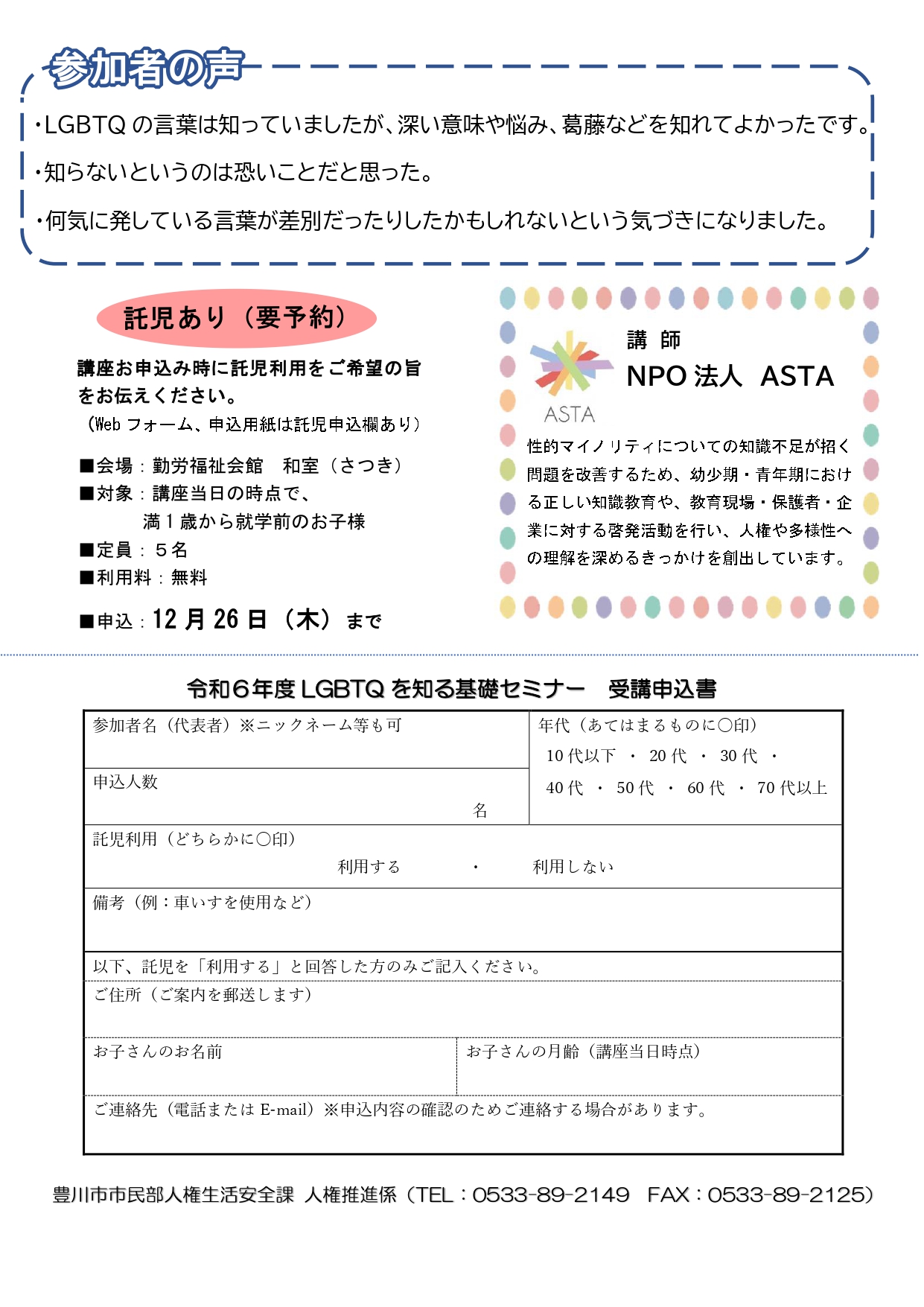 LGBTQを知る基礎セミナー@豊川市勤労福祉会館