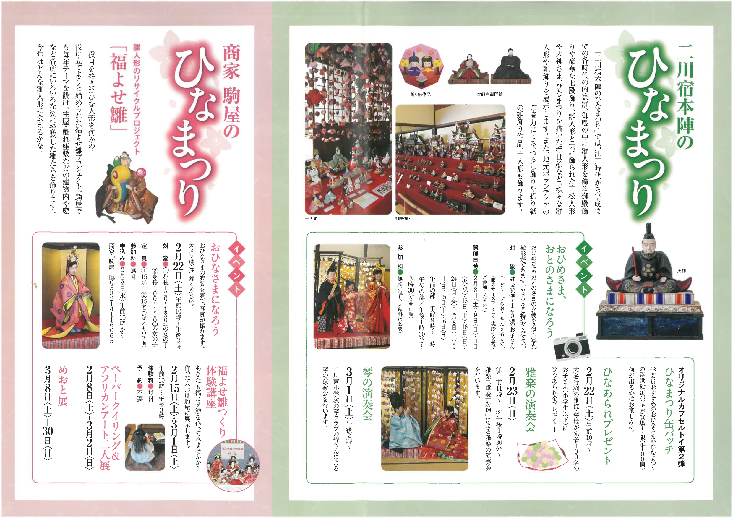 先着100名の子供たち(小学生以下)に、二川宿本陣まつり「大名行列」の雅姫・琴姫がひなあられをプレゼントします。