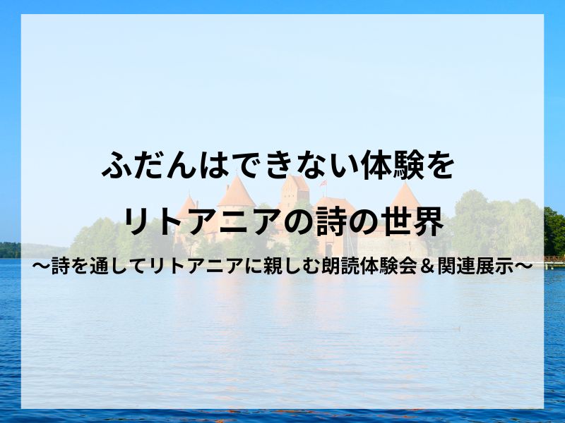 また、参加された方に、参加特典として、講師が翻訳した、リトアニアの代表的な詩人であるサロメーヤ・ネリスの詩が書かれたポストカードと、読めば必ず行きたくなる!!リトアニアの観光リーフレットをお渡しします。